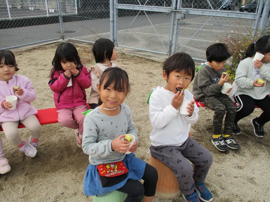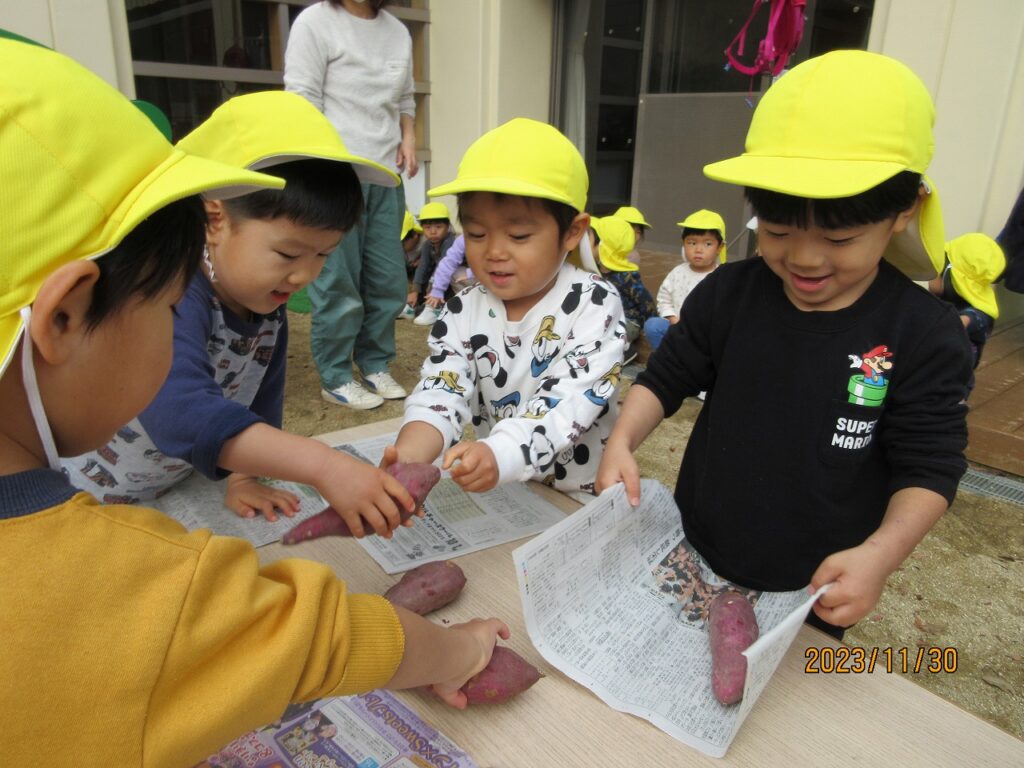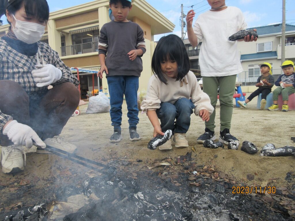 焚火を囲んで匂いや温かさを感じながら、焼き芋が出来るのを待っていました。