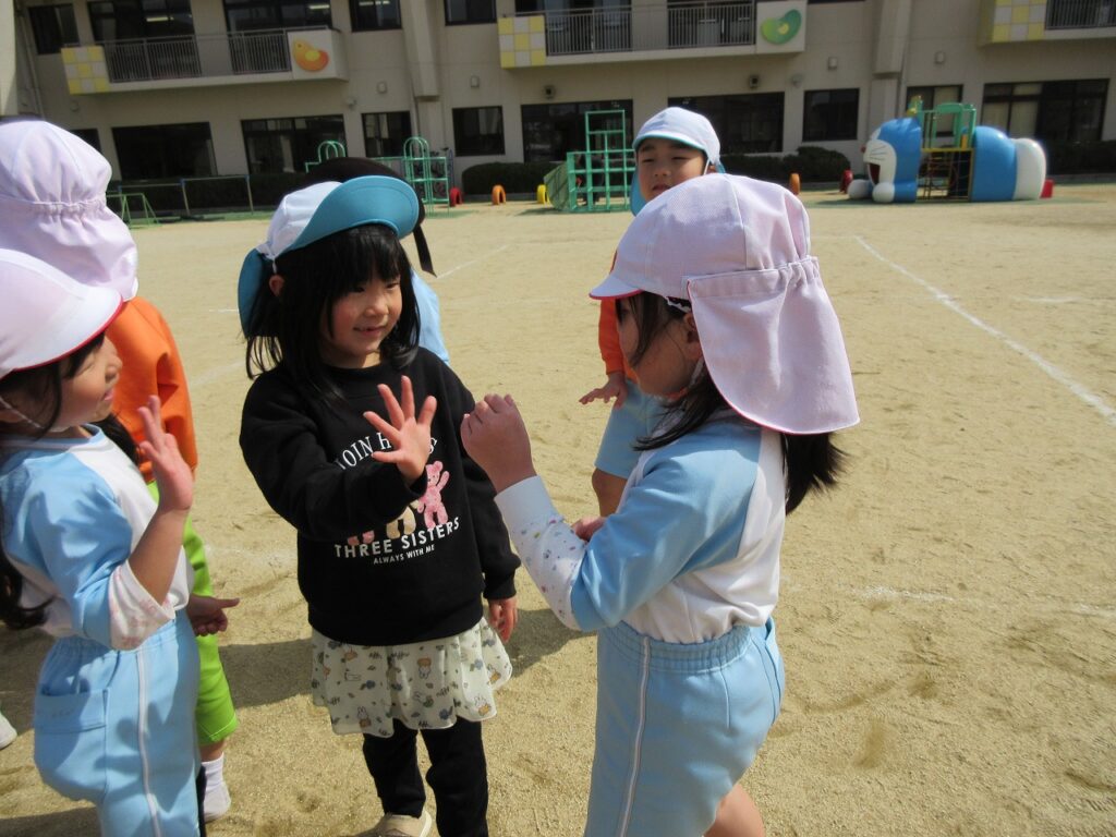 今日は番町幼稚園で行われた校区別の集いに参加しました。小学校ごとにクラスに分かれて自己紹介をしたり歌を歌ったりドッジボールをしたりしました。