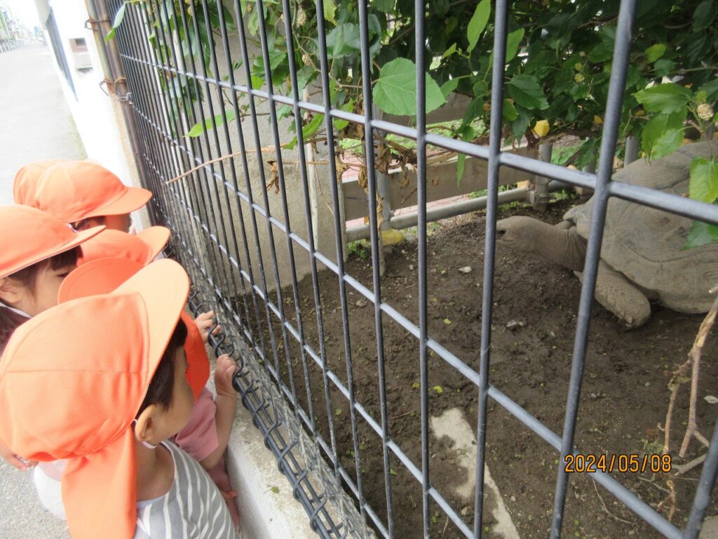 大きな亀を目の前にすると「こわい・・・」と後ずさりする子もいましたが、慣れると怖さもなくなり手を振っていました🐢