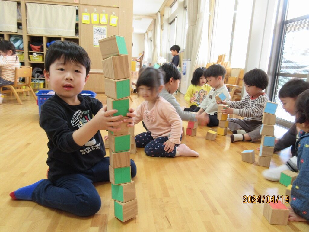 入園、進級してもうすぐ2カ月になろうとしています。4月当初は、不安な気持ちでちょっぴり涙する姿もありましたが、今では、新しい環境にも慣れてきてにぎやかな子どもたちの声が聞こえてきます。友達と楽しく遊んでいる姿をご覧ください。