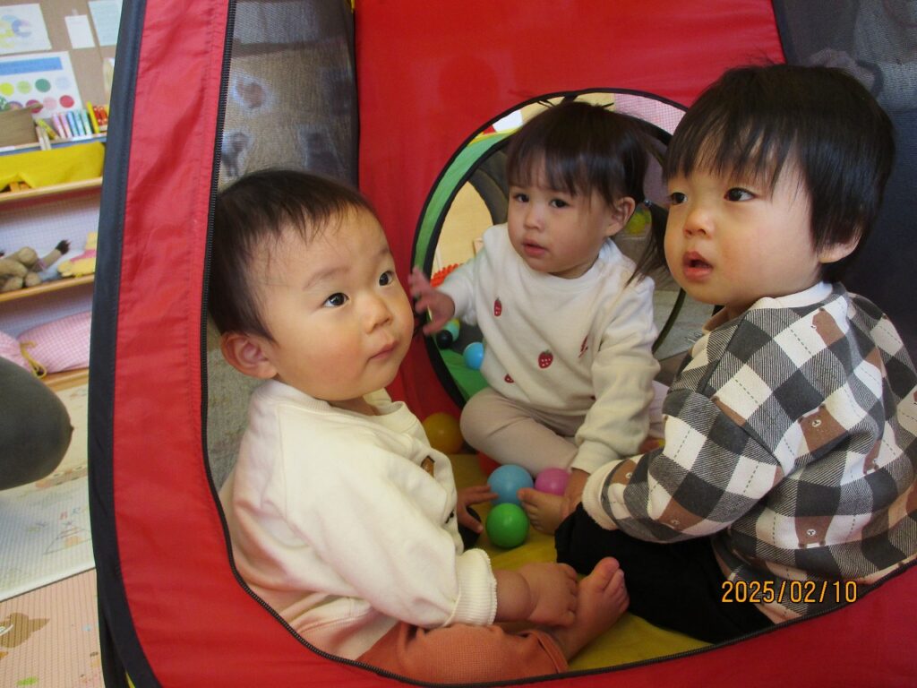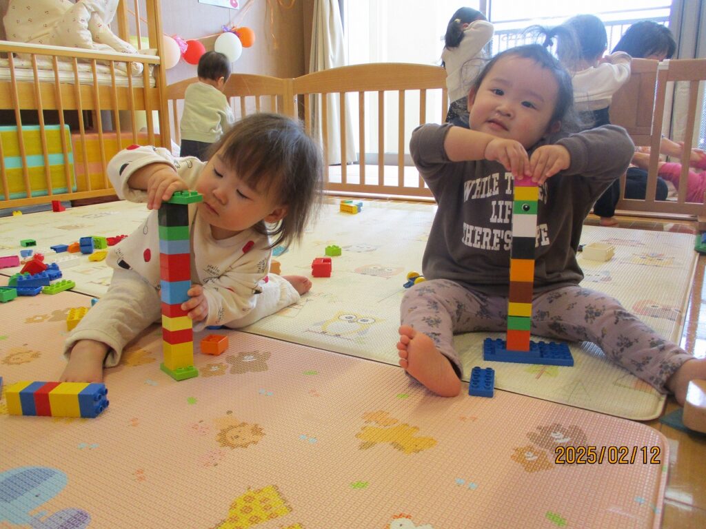 一緒に遊んだり手をつないだり。時には玩具の取り合いっこ・・・