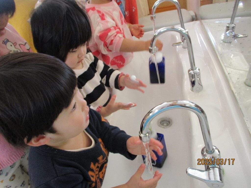 トイレに行ったり、手を洗ったり・・・。自分のマークが分かり、タオルを片付けるようになりました。