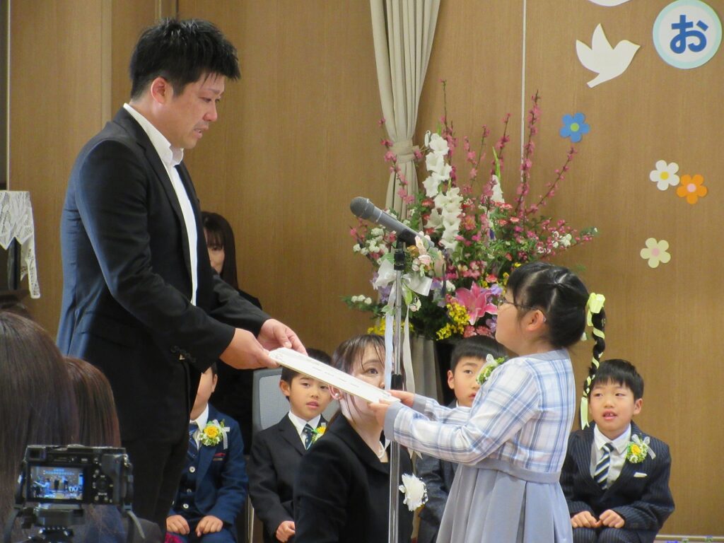 園長先生から卒園証書をもらい、保護者に今までの感謝を伝えた子どもたち。スライドで思い出を振り返ったり素敵な歌を響かせたり、最後は「大きくなったら」と夢を堂々と発表してくれました。