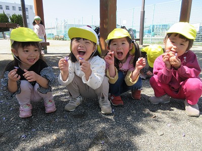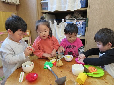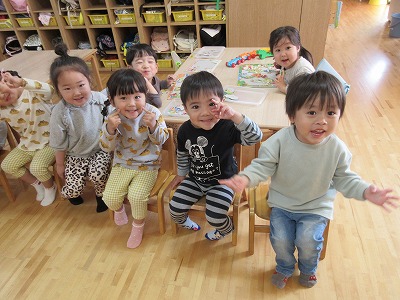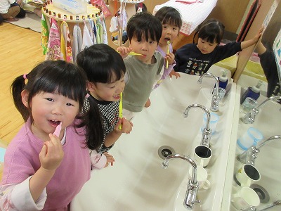 「自分でする!」「できたよ!うれしい♪」など、様々な場面での経験や成功の積み重ねが自立へと繋がっています。ご家庭でも子どもたちの頑張りを傍で見守り応援して頂き、出来た時には大いに褒め、園と家庭とで一緒に喜びを共有しながら子どもたちの成長を見守っていきたいと思います。