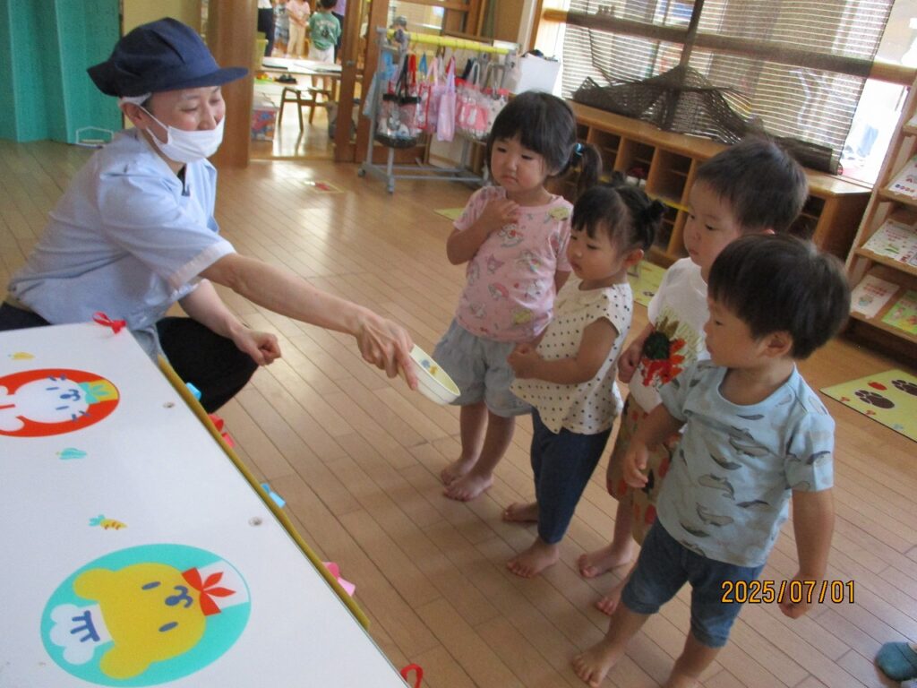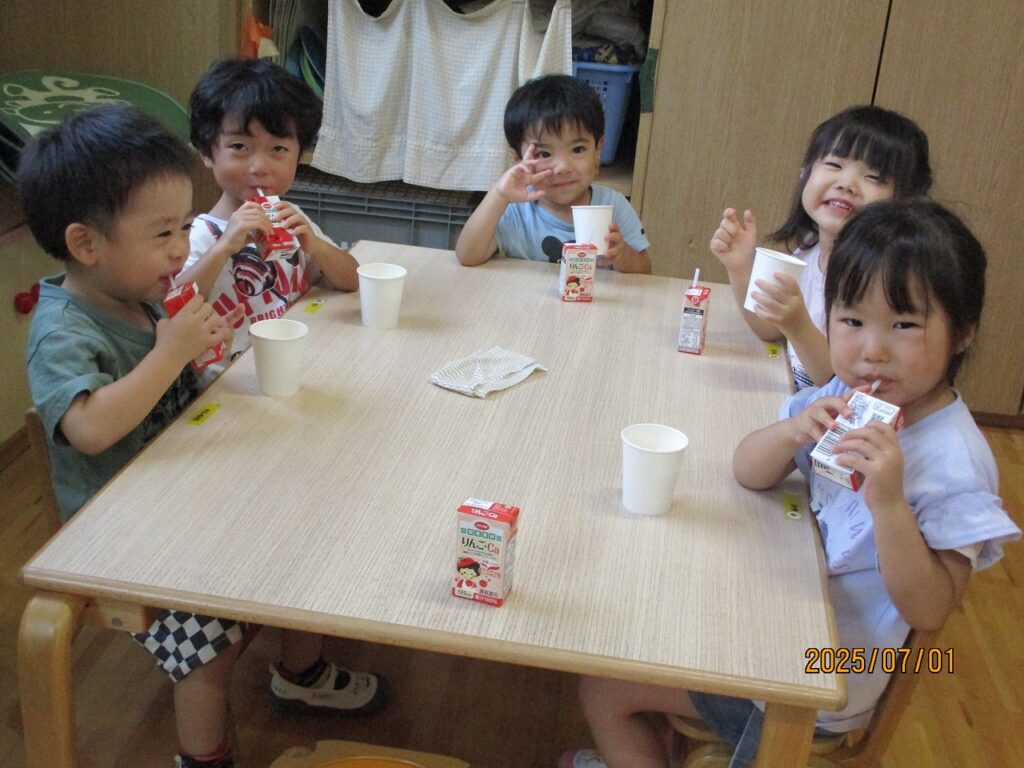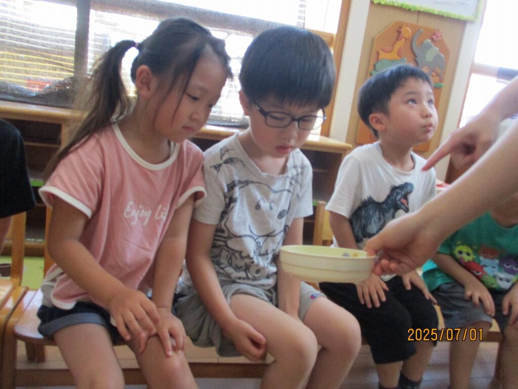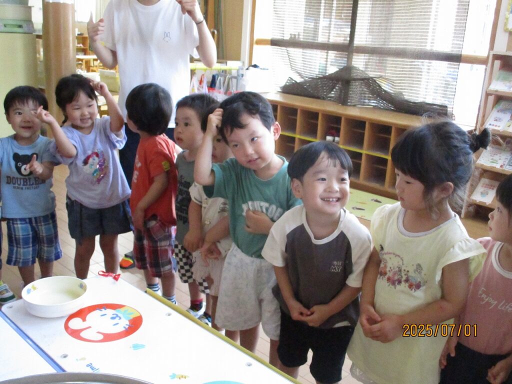 「ポンポン」と弾ける音に、あひる組の子ども達は「ポップコーン🎵ポップコーン🎵」と踊りだしていました。
