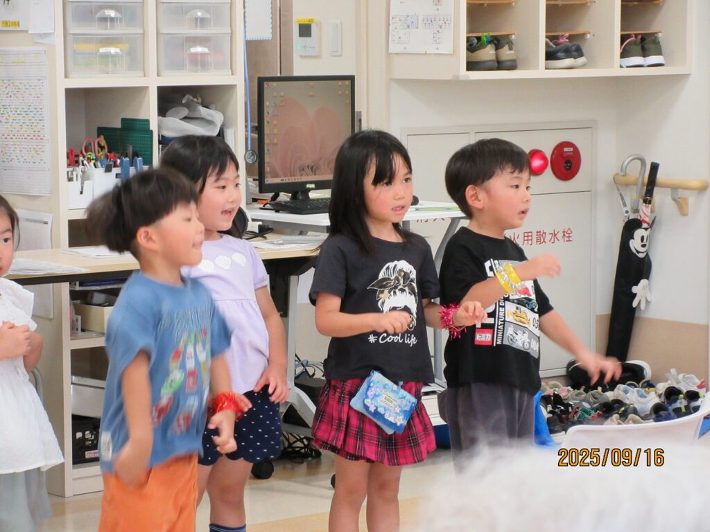 まずは、子どもたちがダンスや歌の発表をしました!この日を楽しみにしていた子が多く「緊張した!」と言いながらも、元気いっぱい発表できました♬