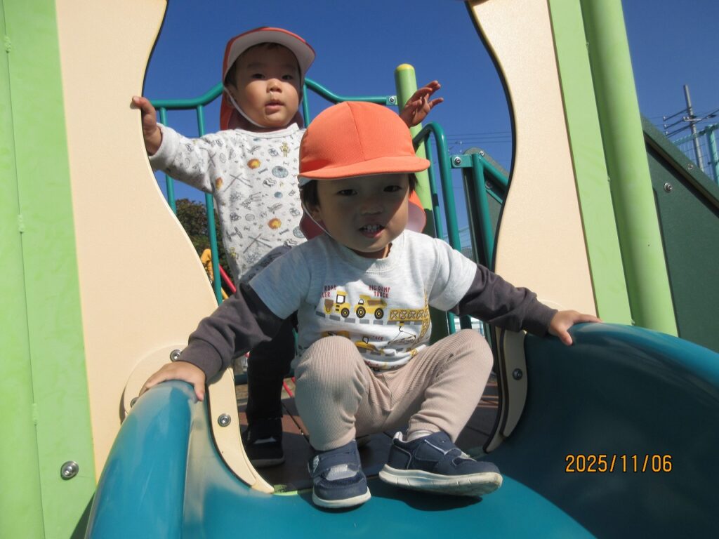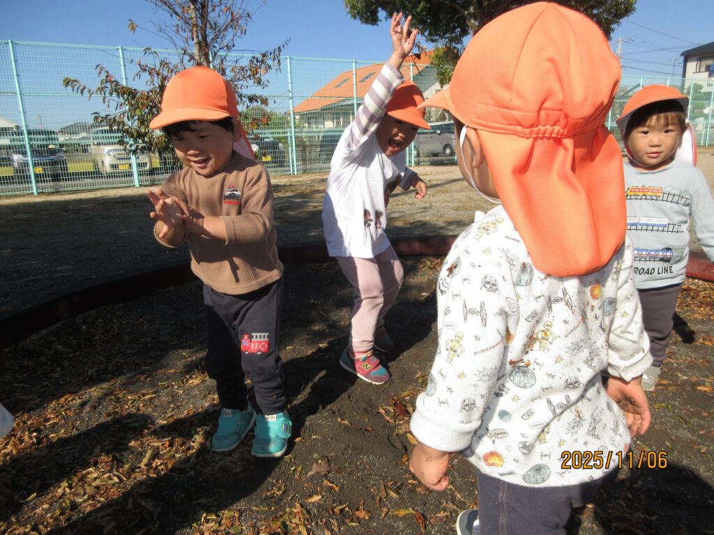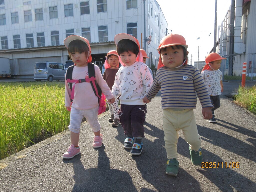 友達と手を繋いで南斎院公園へ元気に出発!
