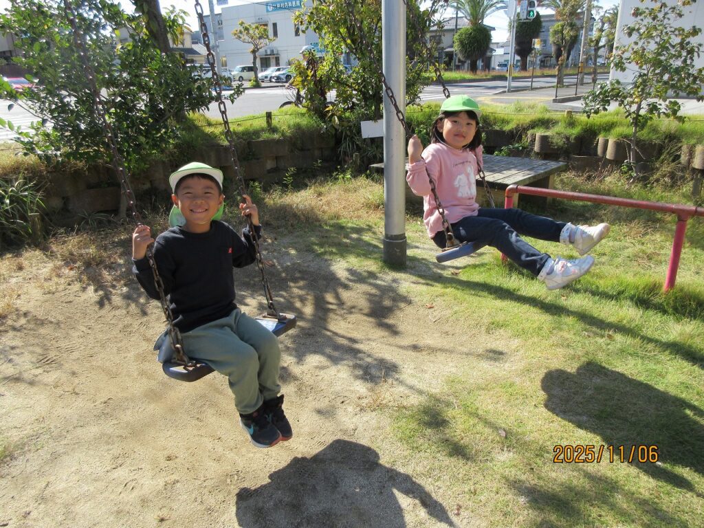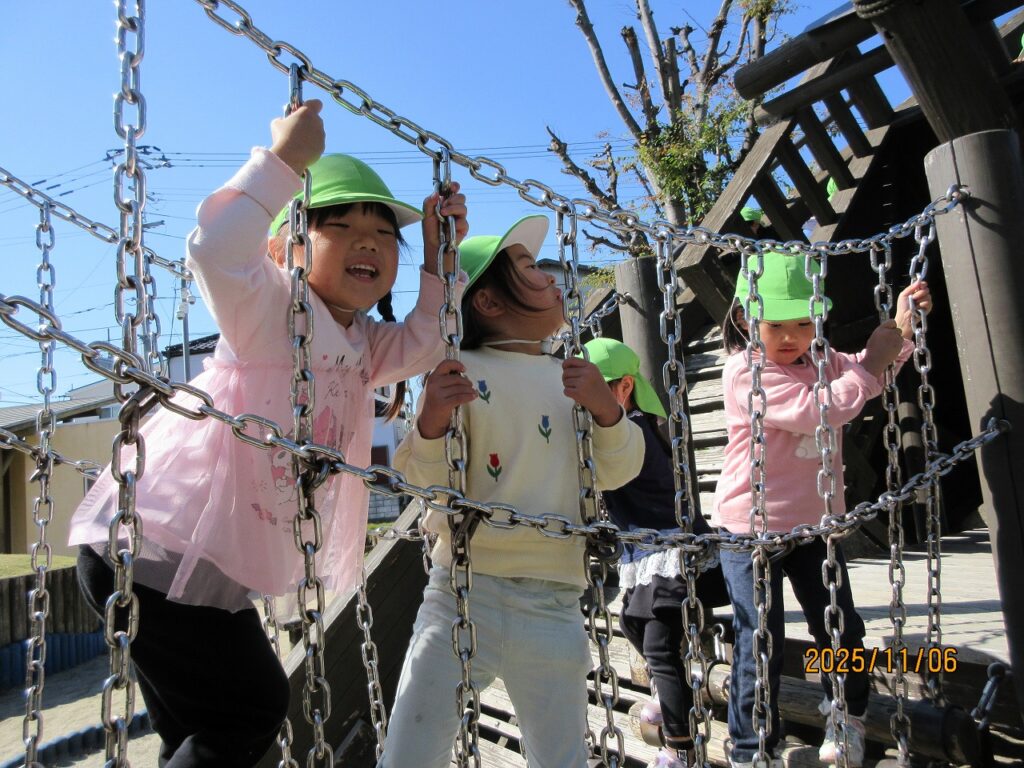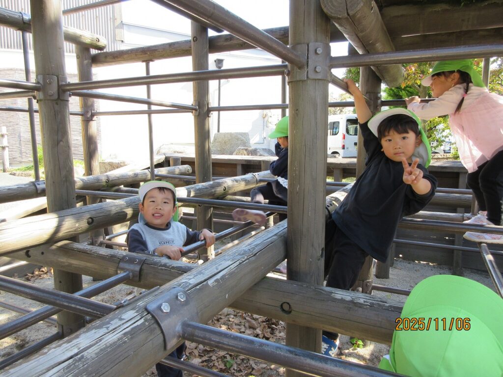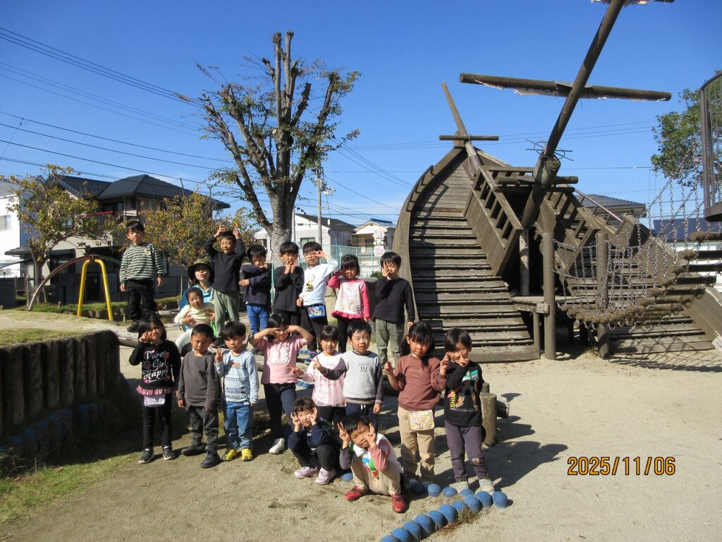 海賊船の遊具は、高さがあるので、少し怖がる子どももいましたが、友達の真似をしていろいろと挑戦したり警察と泥棒ごっこをして追いかけ合ったりして、たっぷり遊びました!帰りは、疲れて足取りは重たかったですが、長い道のりをしっかり歩くことができました!今日掘った芋を使って、料理活動を行いたいと思います!次回の更新をお楽しみにしてください。