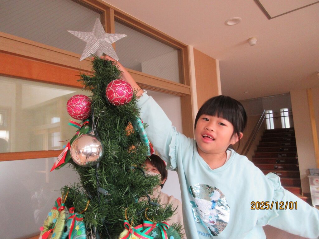 クリスマスツリーを飾り、みんなで「あわてんぼうのサンタクロース🎅」を歌いながら踊りました。