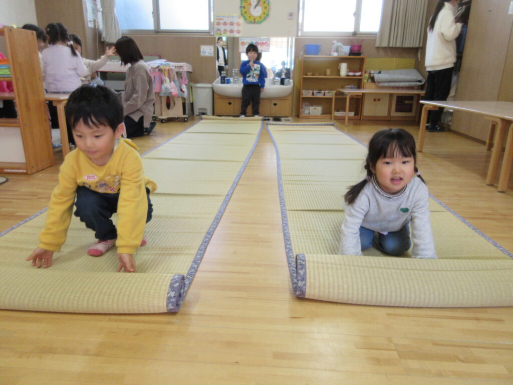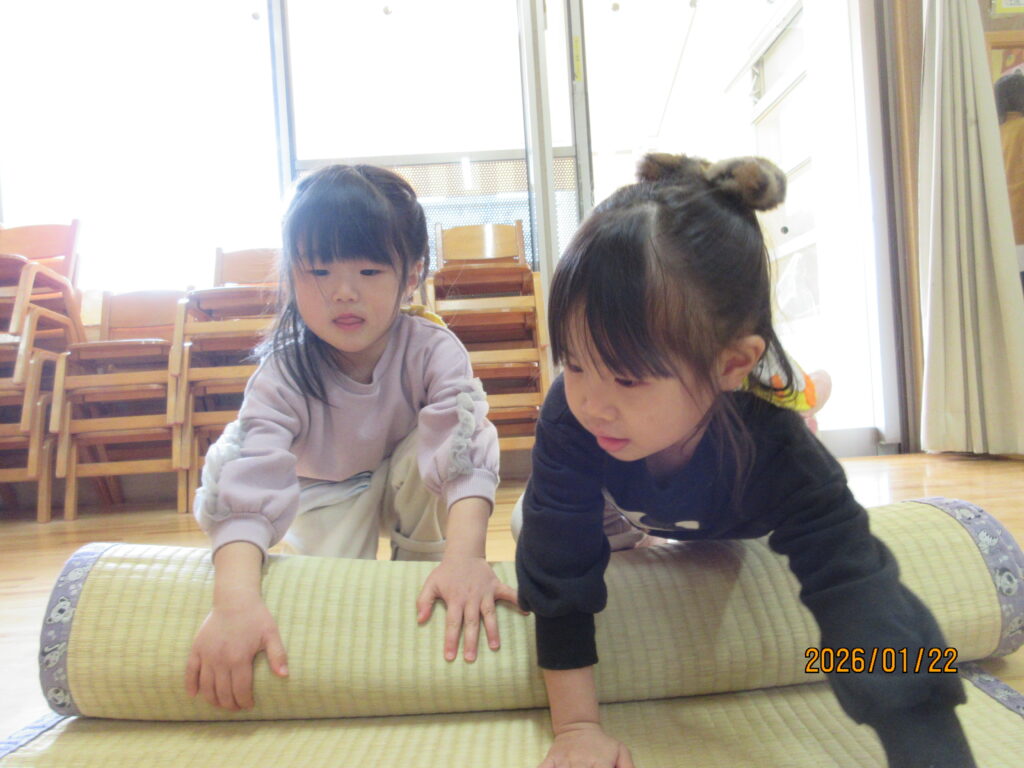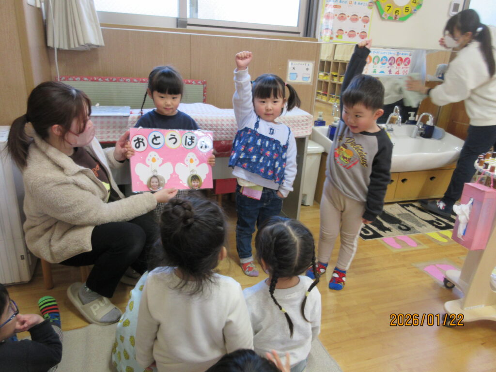 これから進級に向け、自分自身で身の回りのことに気付き、時には、友達と協力しながら園生活を送って行けるよう子どもたちの頑張りを見守り、成長していく姿を傍で応援していきたいと思います。