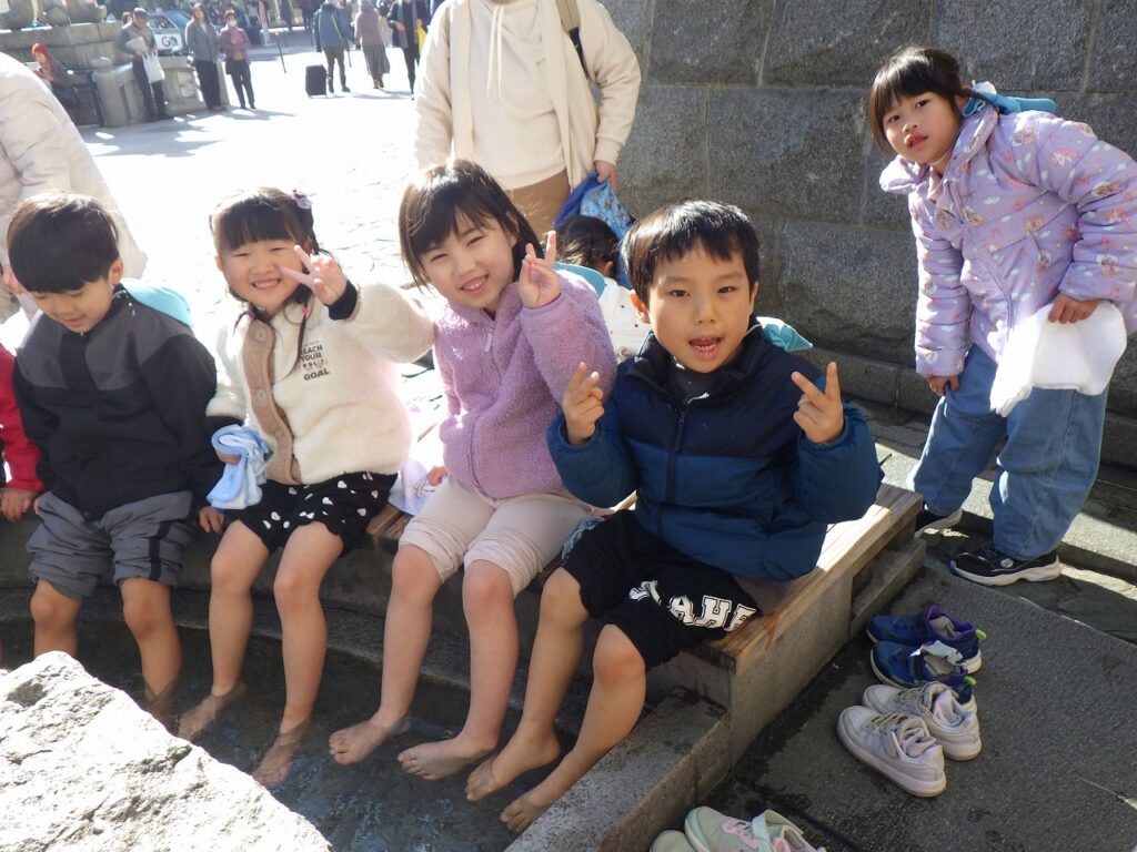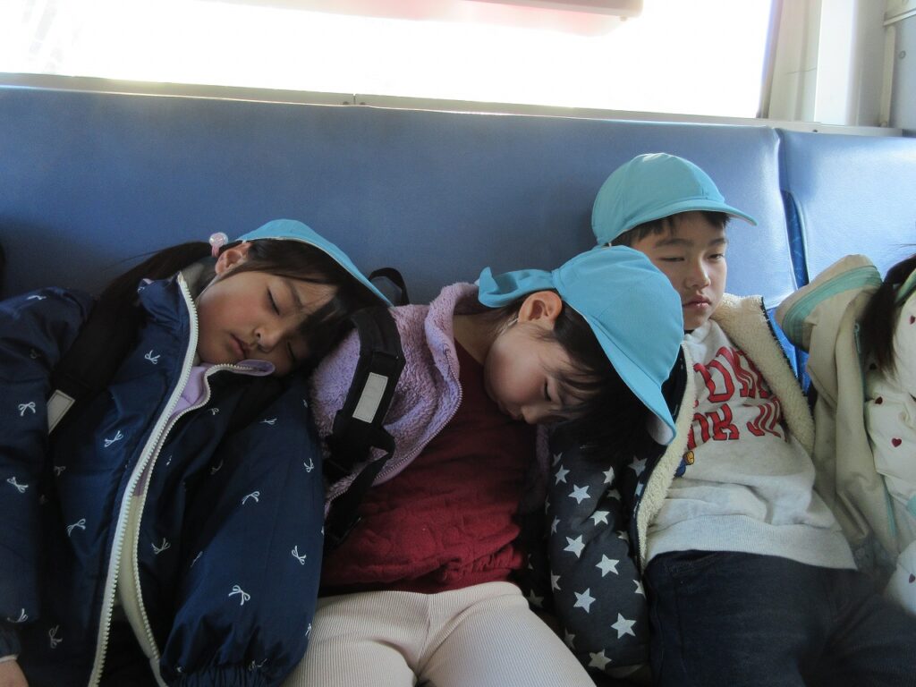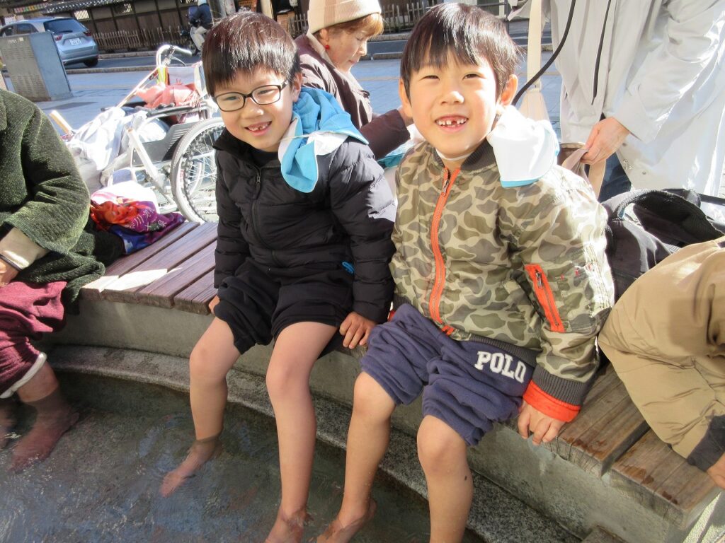 「これ美味しそう」「これ知ってる」など友達と話しながら、アーケードを歩きました。美味しそうな物がいっぱいあり、おやつを買って帰ることに♪子どもたちが選んだのは駄菓子。たくさんあるお菓子の中から、自分が食べたいもの好きな物を買うことができ嬉しそうにしていました。帰りに足湯にも入り「いいきもち」「あったかい」など疲れを癒すことができたようです。帰りのバスでは、ウトウトと眠るかわいらしい寝顔もありました❤