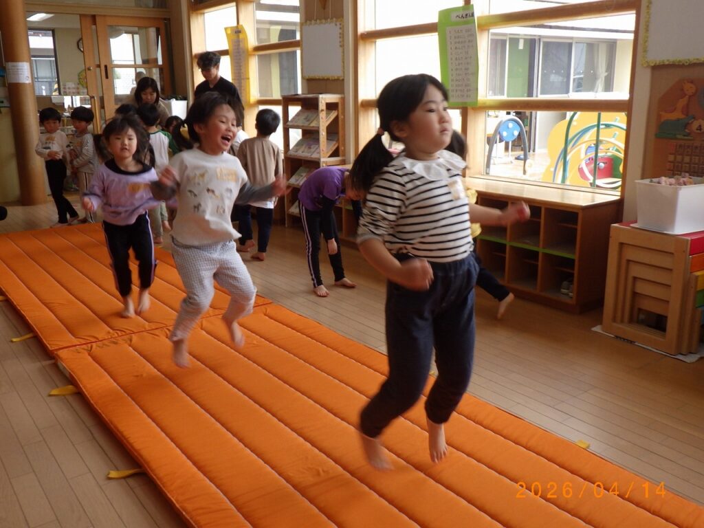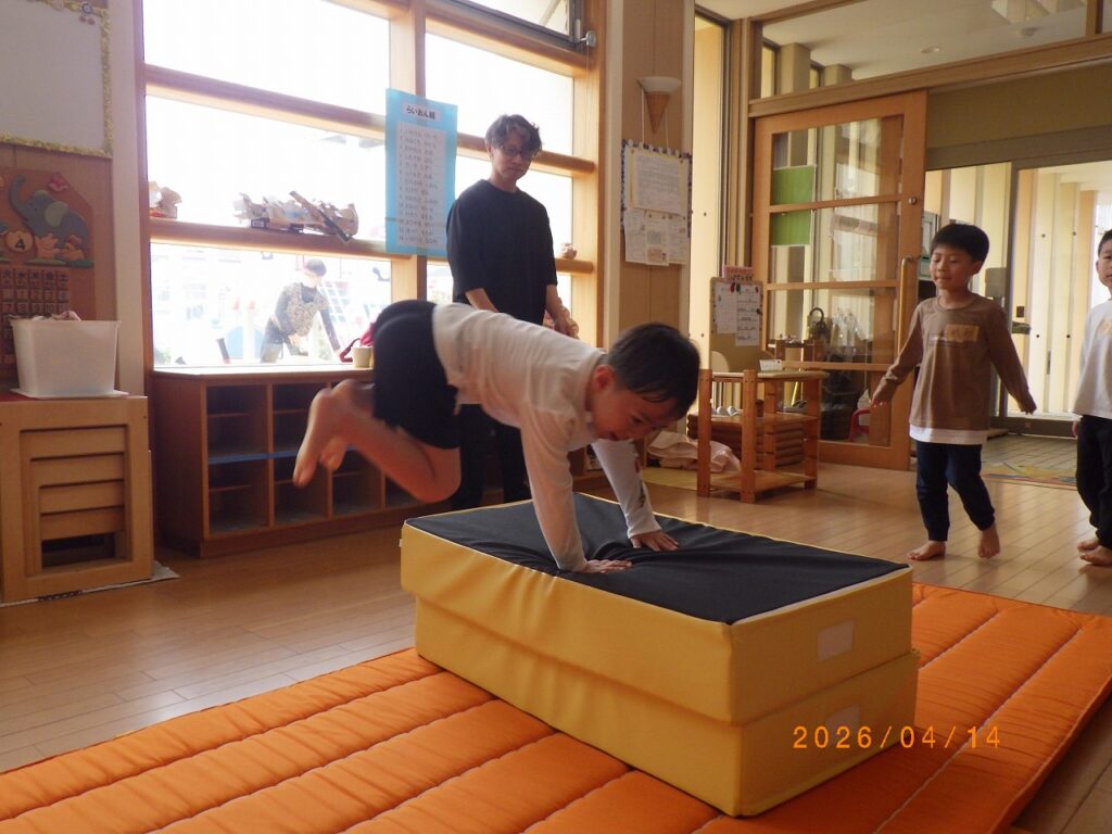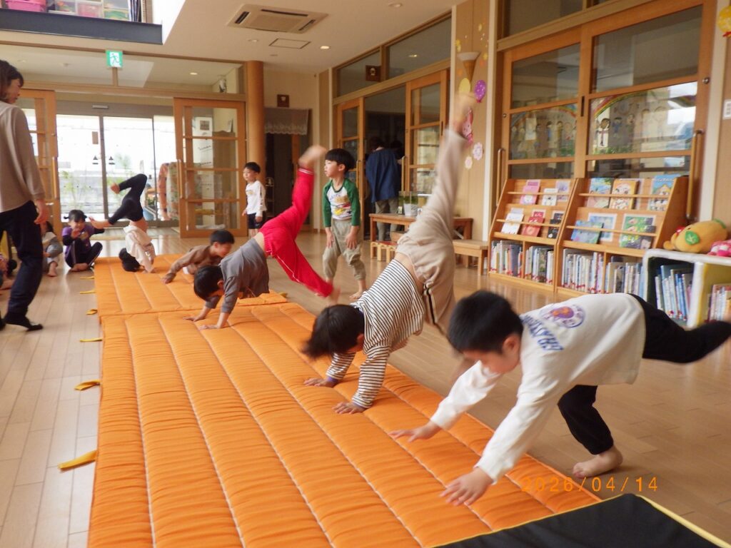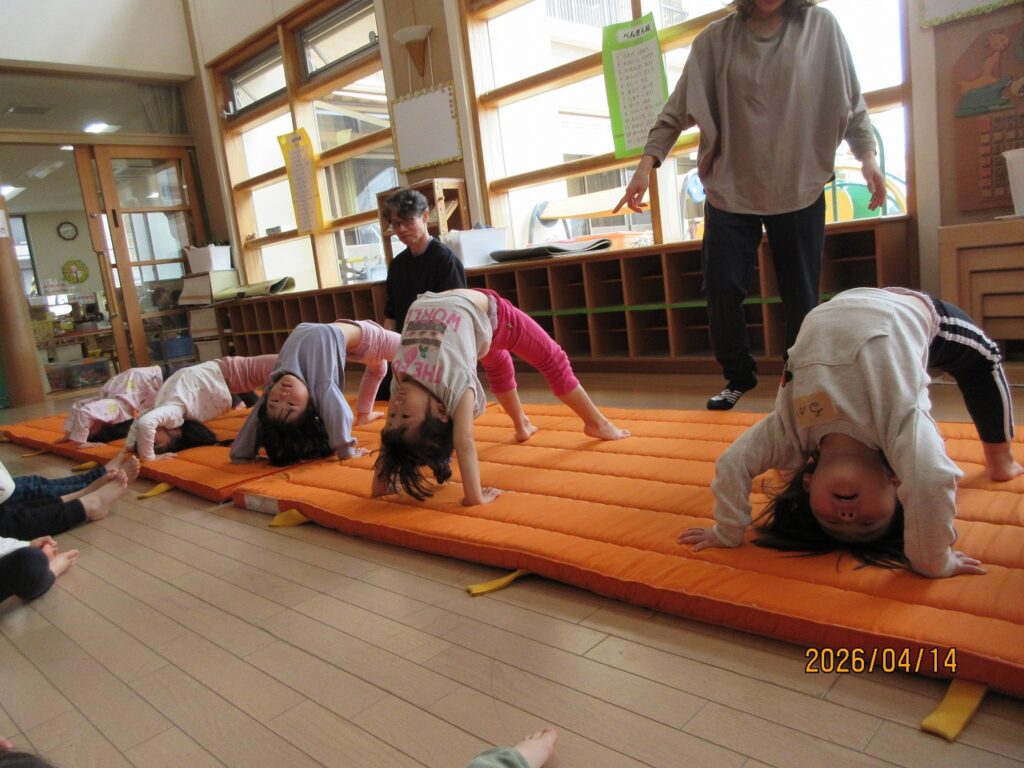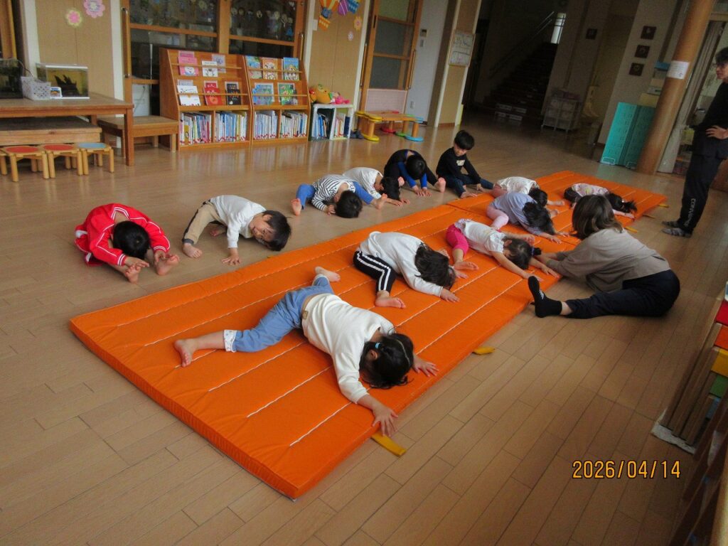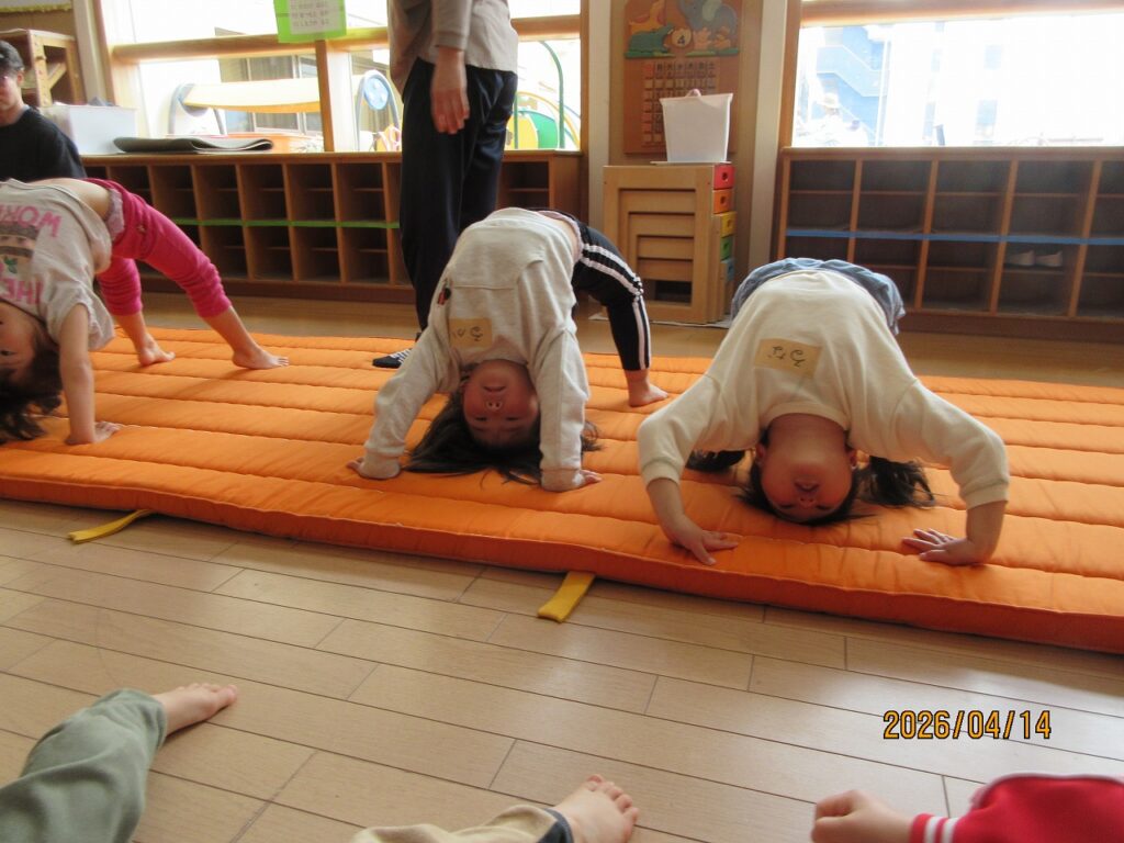 体操教室が終わる頃には、緊張した表情が笑顔になり、「おもしろかったあ!楽しかったあ!」の声。