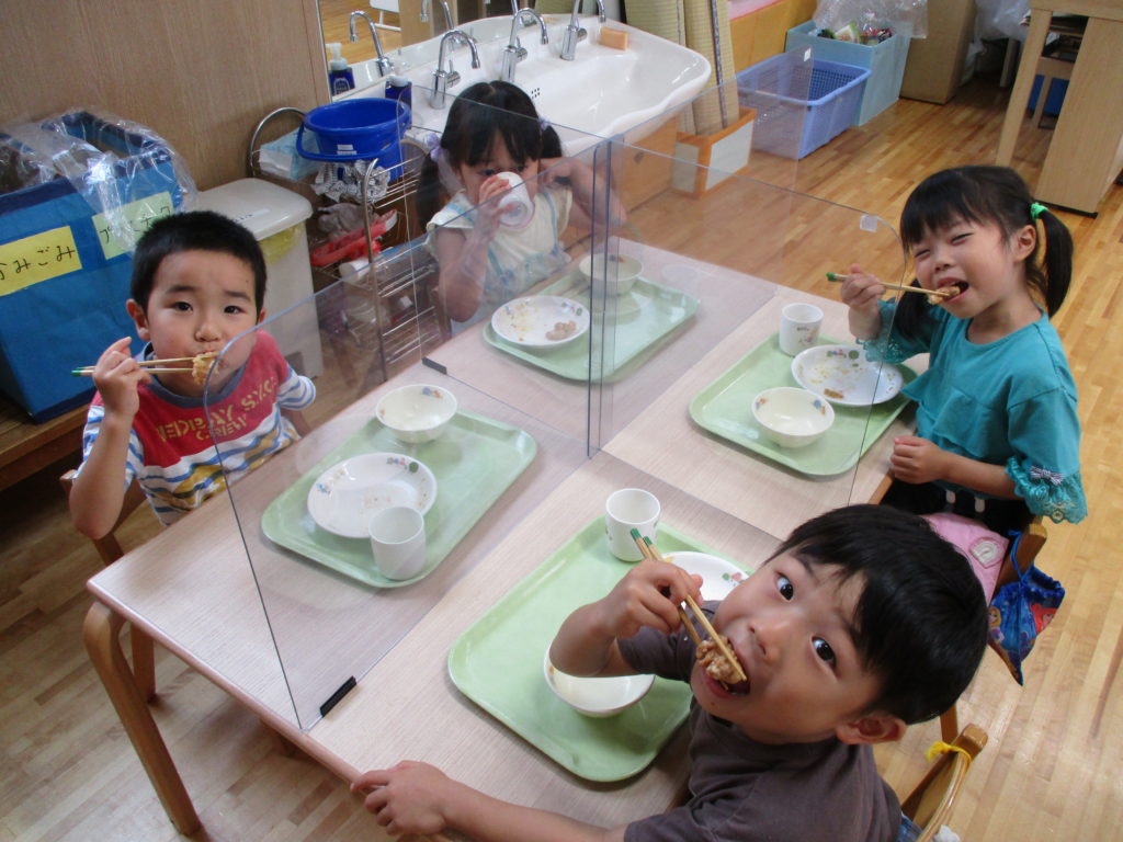 2022.06.21ぴよぴよ リクエストメニューの日(らいおん組) 今日はらいおん組リクエストメニューの日「からあげ」 子どもたちは午前中から匂いに誘われ、とても楽しみにしてくれていました。 今日もきれいに完食です。 子どもたちからは、早速次回のメニューをリクエスト。 しゅうまい、ぎょうざ、カレーライスにハンバーグ。 さて次は何になるのかな。