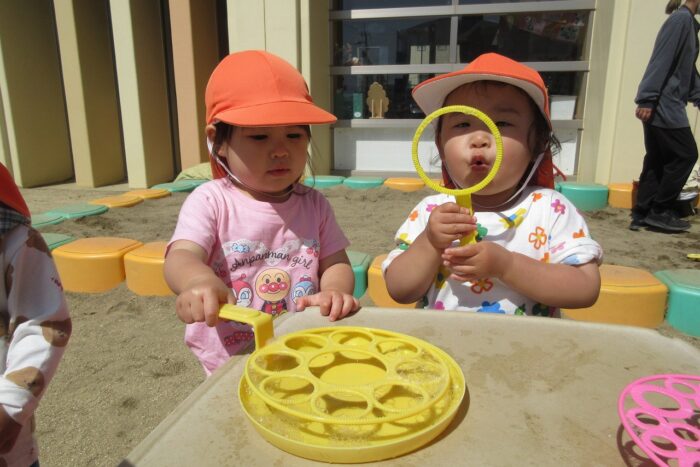 あひる組になり早2カ月が経とうとしています。最初は、不安な気持ちから泣いたり戸惑ったりする姿が見られましたが、少しずつ新しい環境にも慣れ、今では友達や保育士の名前を呼びながら楽しく過ごす子どもの姿を嬉しく思います。 室内では、友達と一緒におしゃべりをしながら、ままごと遊びをしたり椅子を並べて『先生ごっこ』が始まったりと子ども同士で遊びを展開させながらやり取りを楽しんでいます。戸外では、好きな……